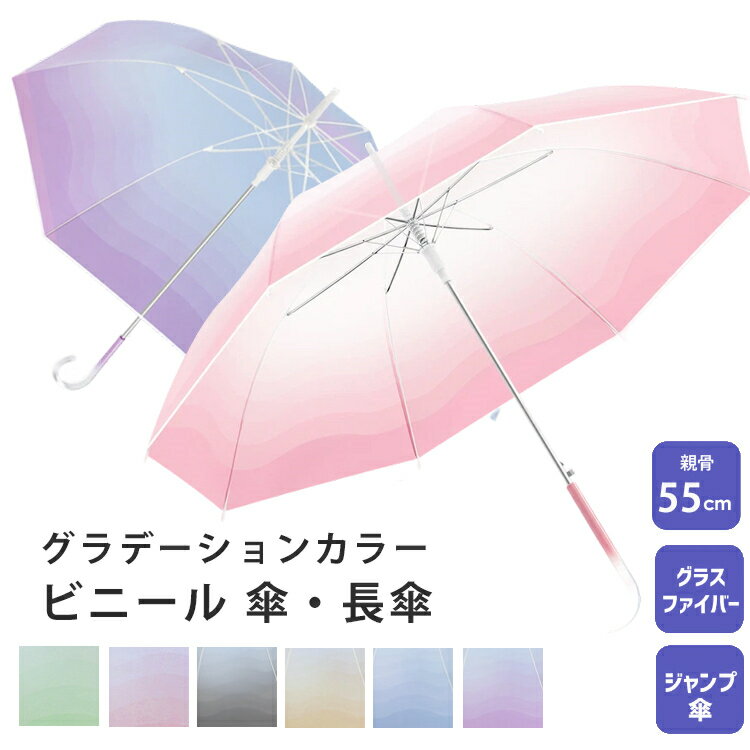 ビニール 傘 長傘 雨傘 かさ 子ども 子供 レディース メンズ 女性 男性 用 ジャンプ式 ワンタッチ 透明傘 長雨傘 グラデーションカラー おしゃれ 可愛い かわいい 8本骨 軽量 耐風 大きめ 軽い プレゼント 送料無料 梅雨 子供の日 プレゼント