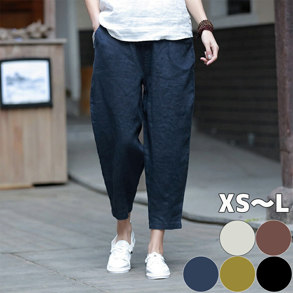 リネン40% 綿麻 パンツ クロップドパンツ 9分丈 7分丈 リネン イージーパンツ 6色 レディース メンズ ズボン 麻 コットンリネン ウェストゴム 体型カバー サルエルパンツ レディースファッション メンズファッション キャンバス パンツコーデ