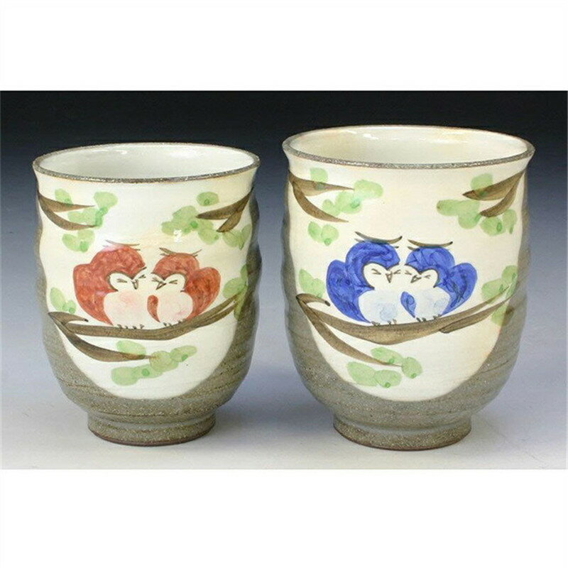 可愛らしい京焼 清水焼 粉引ふくろう組湯呑!