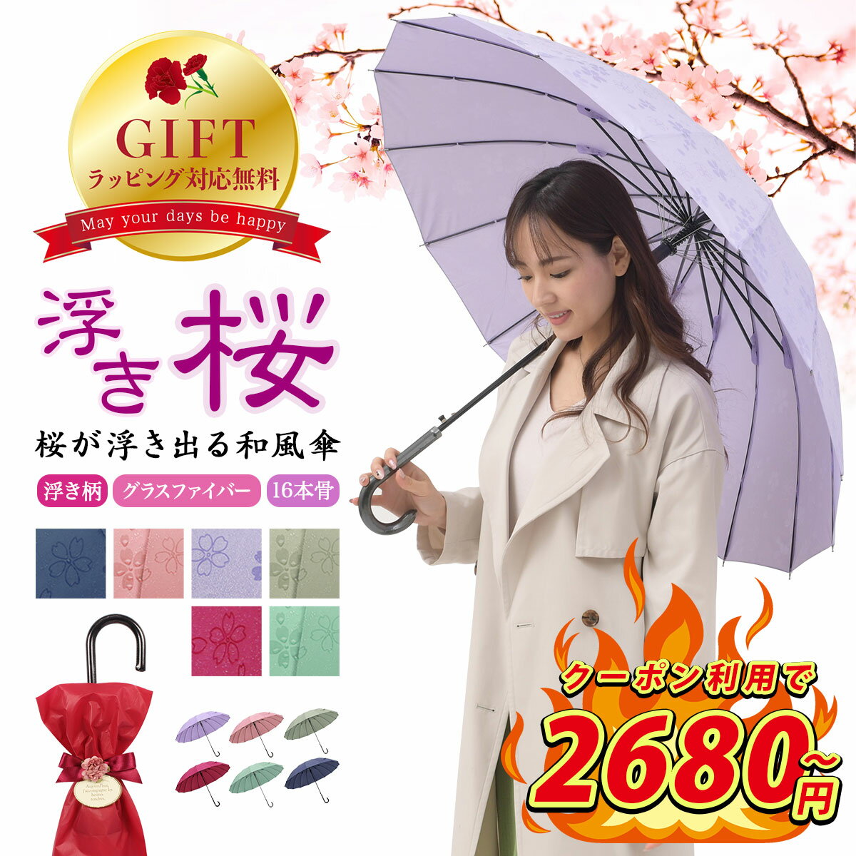 この傘は和風デザインで、桜の花びらが優雅に描かれているから、持っているだけで気分も上がりますよ!