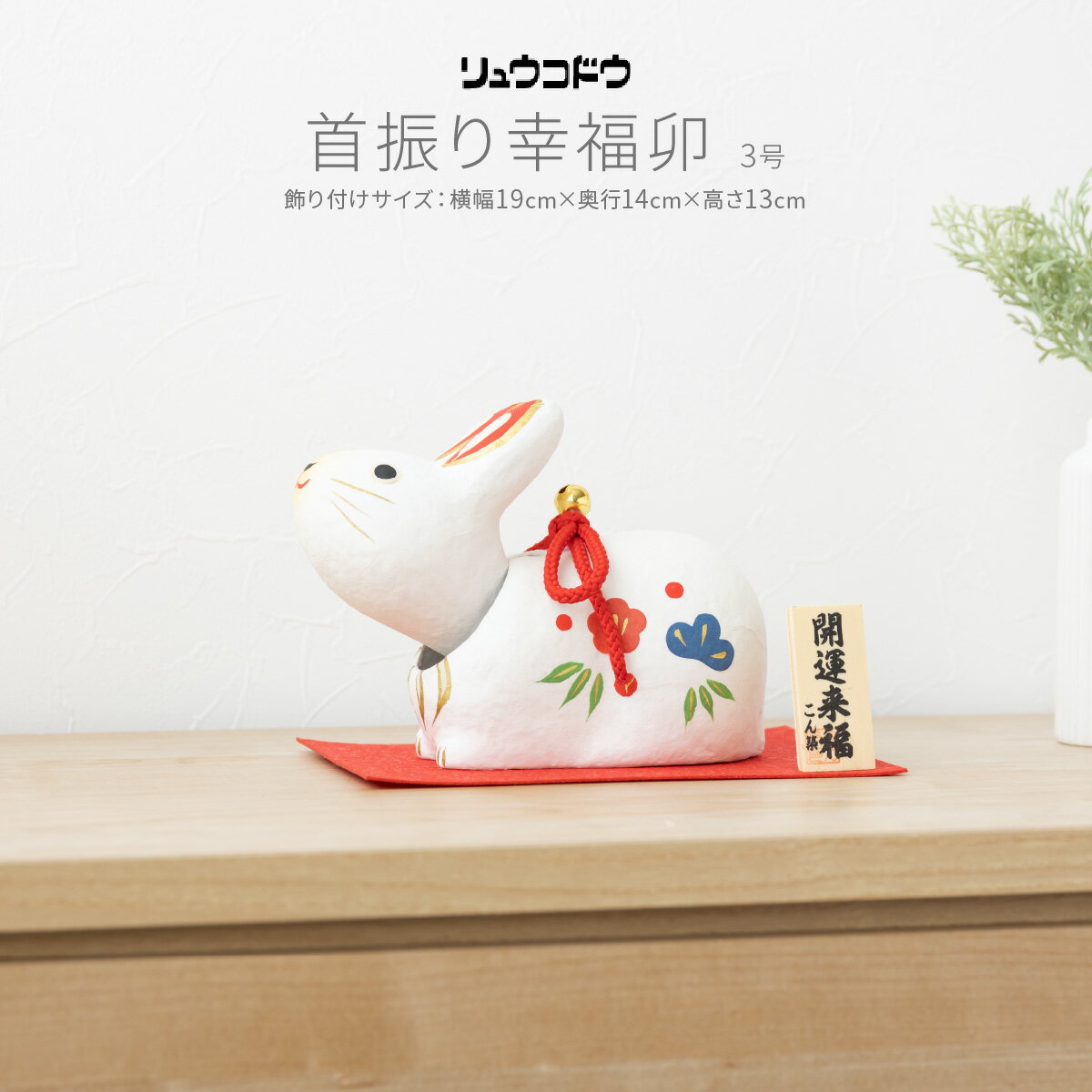干支うさぎ置物、モダンインテリアにおしゃれな雑貨。首振り幸福卯3号。