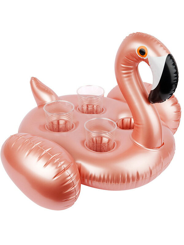 かわいいフラミンゴ柄の浮き輪ドリンクホルダー!