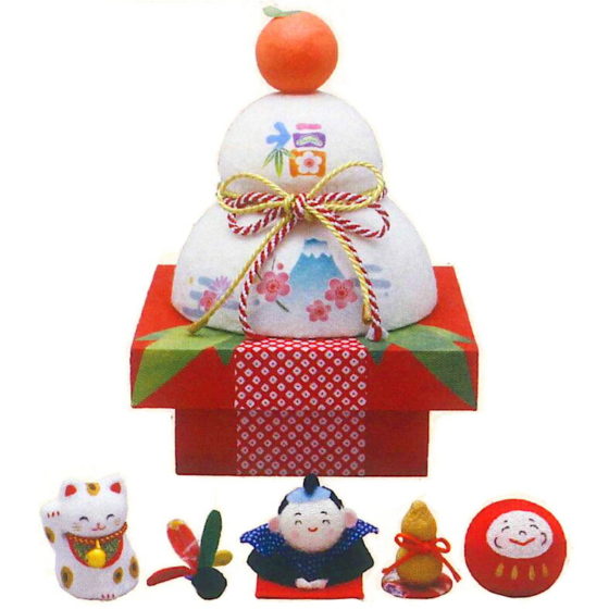 More Details初正月かわいい縁起飾り、ちぎり和紙【彩 五福鏡もち】XS【コンパクトミニ羽子板】