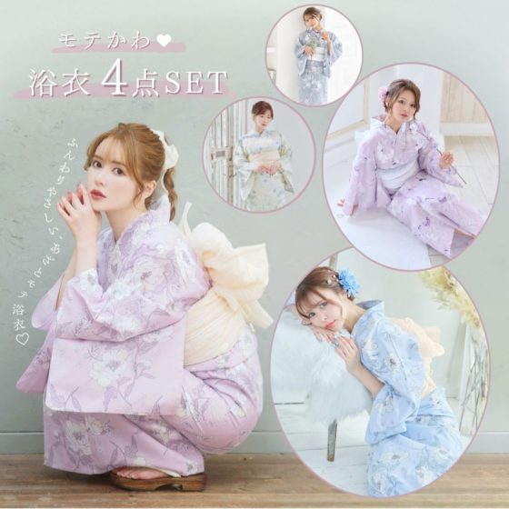 More Detailsレディース浴衣セット、花柄4点、下駄付き。ピンクやパープル、水色など豊富な色。可愛い大