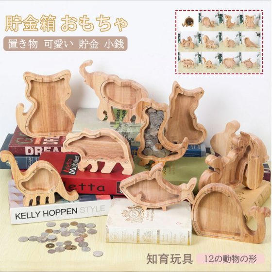 More Details子供向け透明動物形貯金箱缶。木製でお札硬貨収納。誕生日やクリスマスに最適。