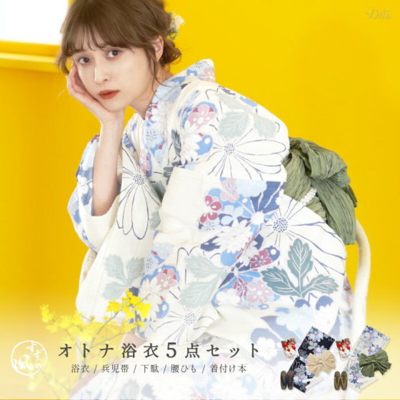 More Details浴衣セット:花柄レディース用2025。古典菊デザイン。