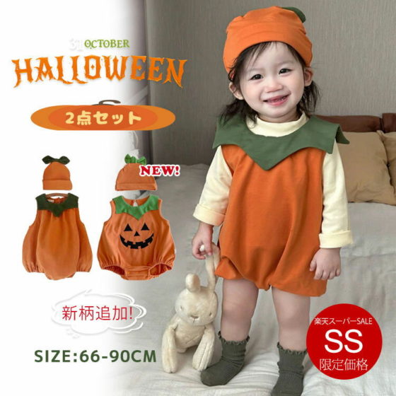 More Detailsハロウィンかぼちゃロンパース2点セット。子供用男女児コスプレ衣装。可愛いプレゼント。