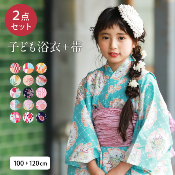 More Detailsキッズ浴衣セット、兵児帯付き。女の子用。可愛いレトロデザイン。100cm〜120cm。