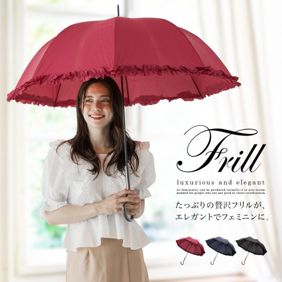 More Details可愛いレディース用長傘、ジャンプデザイン、おしゃれなフリルと大きめ。