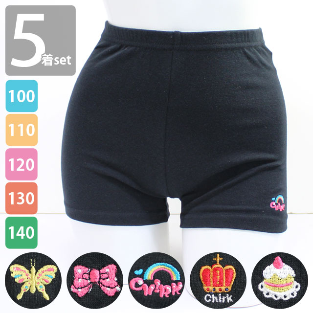 【5枚セット】 キッズ 女の子 子供 オーバーパンツ 1分丈 レギンス スパッツ / アンダーパンツ インナーパンツ ブラック 黒 カワイイ刺繍入り 卒業式 入学式 通園 通学 送料無料