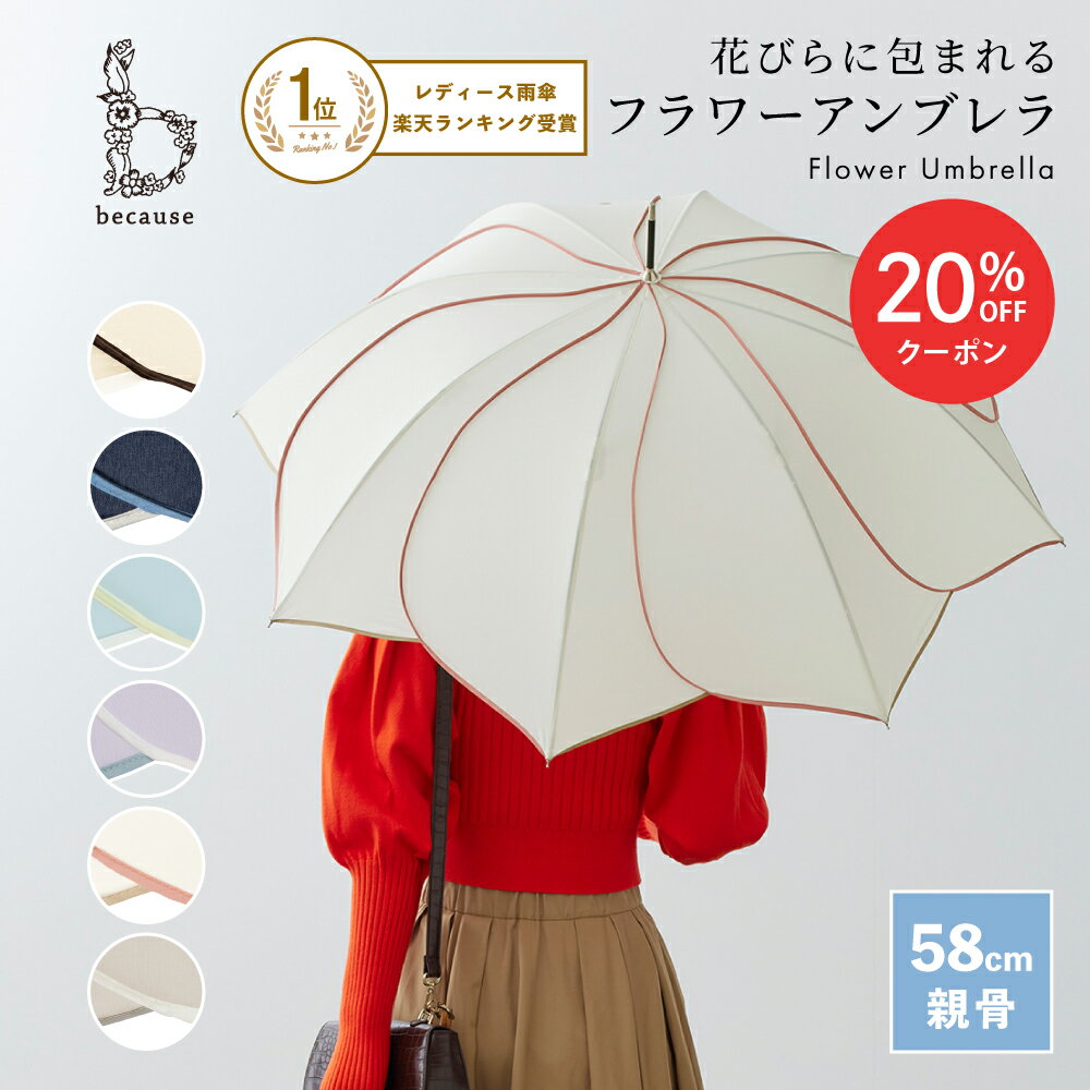 【because 公式】バイカラーパイピング長傘。花柄UVカットレディース傘。可愛い花びらデザイン。