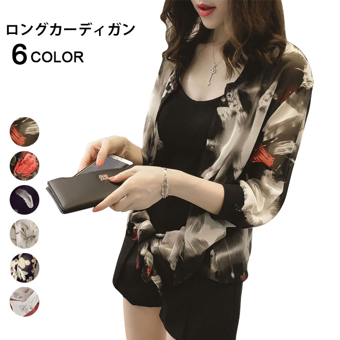 この夏、ぜひお出かけやリゾート旅行に持っていきたい「【送料無料】ロングカーディガン レディース プリントカーディガン シフォンカーデ