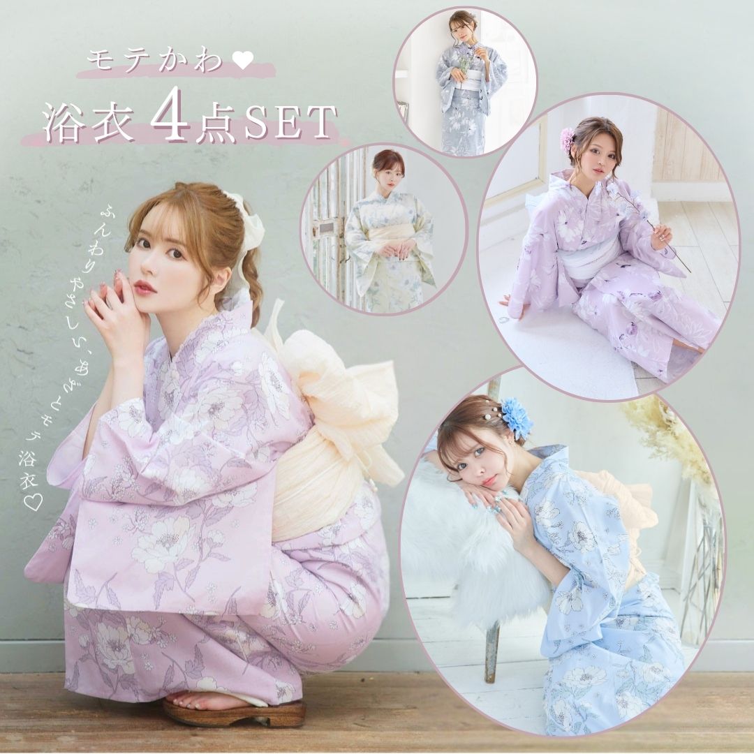 かわいい花柄や、お気に入りの色が選べて、自分好みの浴衣スタイルを楽しめるのが魅力だね!形も着やすくて、女性らしいシルエットを演出してくれるんだ!