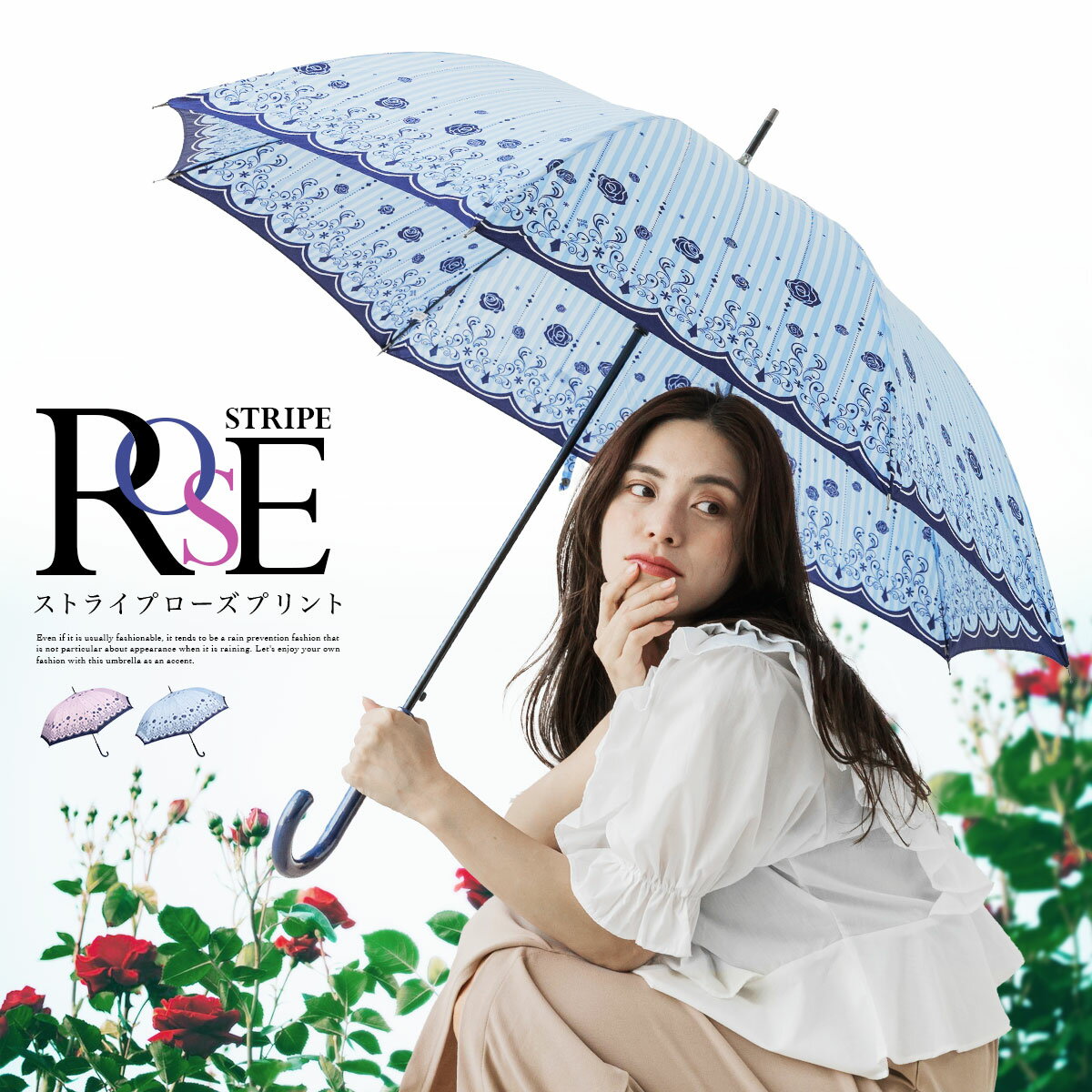 友達とのランチやショッピングデートの日も、この花柄ストライプ雨傘を持っていけば、きっと盛り上がること間違いなし!