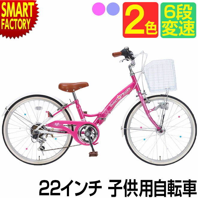 女の子向けカワイイLED自転車22インチ。シマノ6段変速、LEDオートライト付き。折りたたみ可。