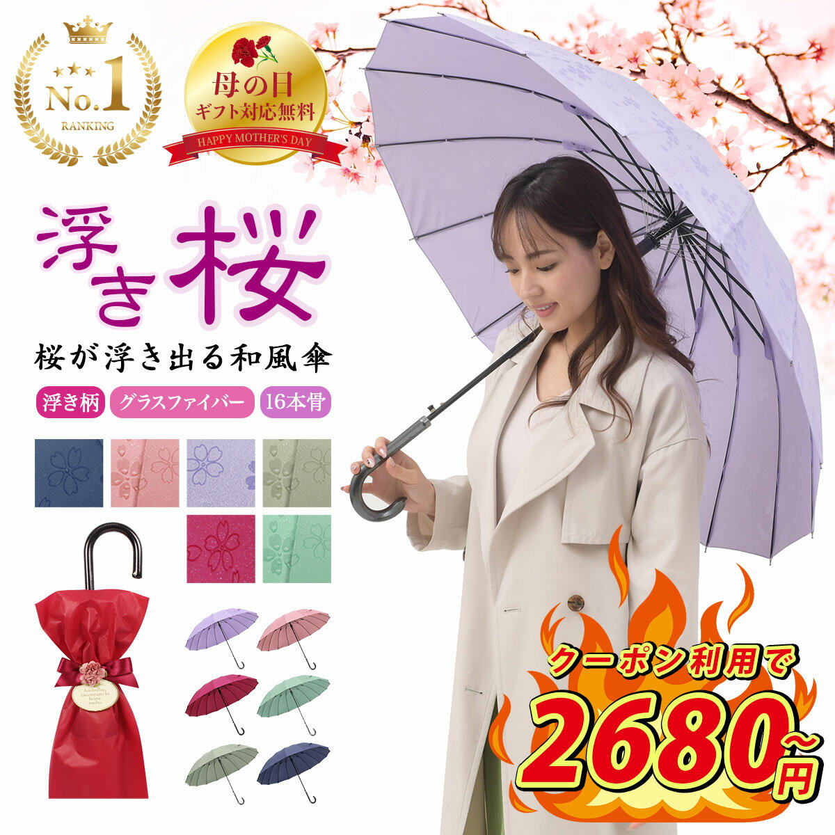 この傘、16本の骨が入っていて、しっかりとした作りだから、風の強い日でも安心だよ!母の日にプレゼントするのもおすすめだね。しかも、今なら無料ラッピングも受け付けているから、さらに素敵にプレゼントできちゃう!