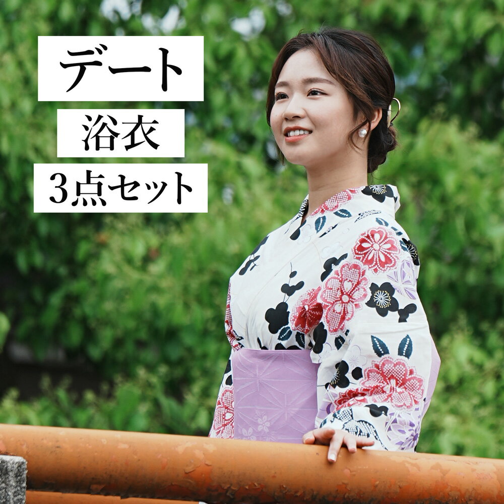 友人と一緒に楽しいデートを計画中のあなたにぴったり!「デート浴衣 平織 3点セット」は、大人可愛い柄が特長のレディース用浴衣セットです。