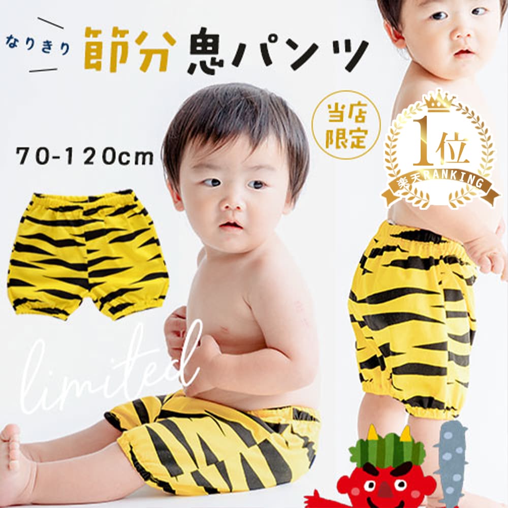 この可愛いコスプレ衣装を使えば、節分のパーティーやお食い初めのイベントがもっと楽しくなるよ!赤ちゃんがこの鬼のパンツを着ると、みんなが笑顔になること間違いなし!