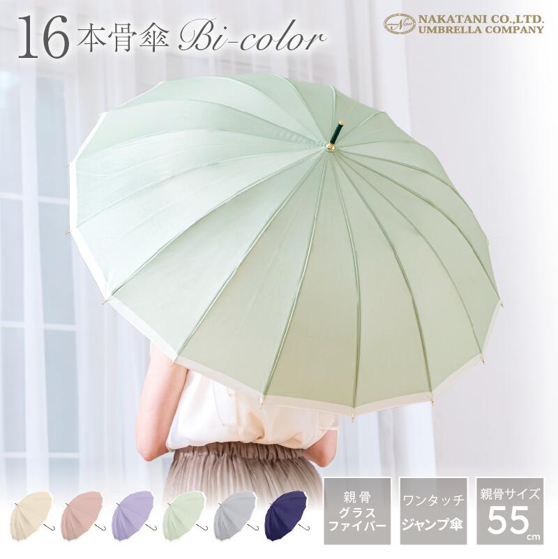 長傘 16本骨 傘 晴雨兼用 レディース和風バイカラー耐風丈夫ジャンプワン